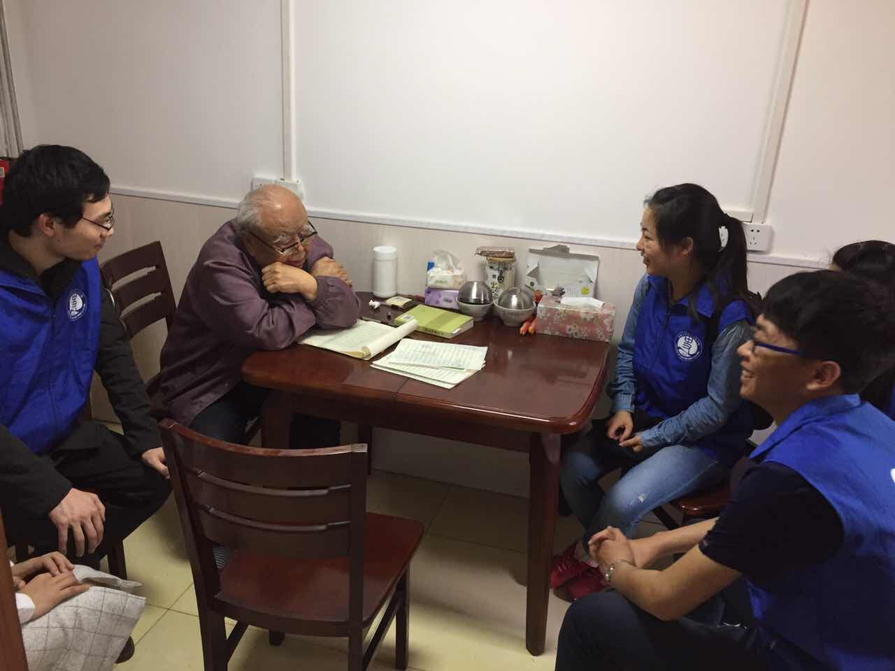 90多岁高龄的朱先生仍坚持为学院志愿者传道授业解惑