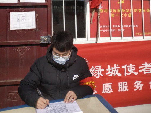 本科生王升、杨玉冰、孙延森、丰子娴、杨冬雨、乔梓鑫等同学响应号召,全身心投入抗疫工作中。王升同学积极加入防疫志愿者队伍,认真走访并记录每户人家详细信息,然后开展网上数据上报工作,并驻扎村口对过往人员进行疫情检查。杨玉冰同学在村口“劝返点”值班,主要负责对进出人员进行登记,耐心叮嘱武汉返乡人员务必居家自行隔离,为邻里奔走宣传防疫知识,提醒村民日常佩戴口罩、减少外出次数、加强自我锻炼、避免多人聚会,从生活小事入手,稳抓落实防疫工作。孙延森同学在寒假期间自愿加入社区志愿者队伍,在小区门口协助站点工作人员进行防疫排查,并定期对垃圾桶等公共设施进行消毒,力求营造健康、安全的社区环境。丰子娴同学在开封市梁苑办事处大宏社区积极参加志愿服务工作,协助社区工作人员对进出小区的人员逐一进行体温检测与扫码登记,并对车辆进行排查、消毒,为控制疫情做出切实贡献。乔梓鑫积极加入河南省共青团组织的志愿者队伍,主动与所在社区取得联,主要负责为社区居民测量体温与登记个人信息,并随着郑州市疫情防控线上健康系统的推出使用,协助居民通过扫描二维码的方式进行个人信息录入,志愿期间按时到岗,耐心帮助群众录入信息,彰显着新时代大学生志愿服务风采。