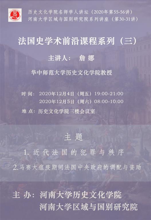 【讲座通知】詹娜:法国史学术前沿课程系列(三)