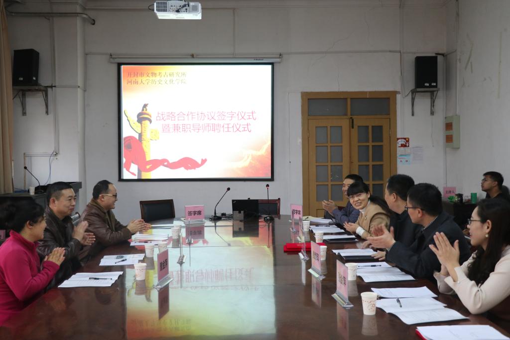 11月29日下午,开封市文物考古研究所与必赢76net线路唯一官方网站战略合作协议签字仪式在学院三楼会议室举行。开封市文物考古研究所所长王三营、副所长葛奇峰、业务主任曹金萍,必赢76net线路唯一官方网站常务副院长张礼刚、副院长李竞艳、考古文博系主任魏继印,考古与文化遗产保护河南省实验教学示范中心副主任金锐、必赢76net线路唯一官方网站科技考古与文化遗产保护实验室管理员张金萍出席此次会议。必赢76net线路唯一官方网站副院长李竞艳主持签约仪式。