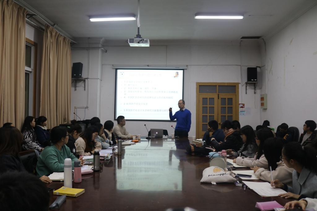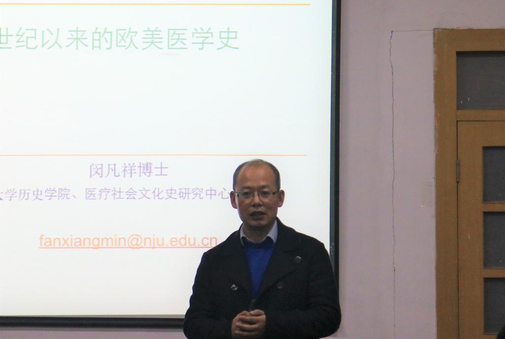 11月17日晚,南京大学教授闵凡祥应邀在必赢76net线路唯一官方网站三楼会议室做题为《20世纪以来的欧美医学史》的学术讲座。本次讲座是必赢76net线路唯一官方网站世界史专业欧洲经济社会史系列讲座课程的一部分,由世界史系主任胡浩副教授主持。