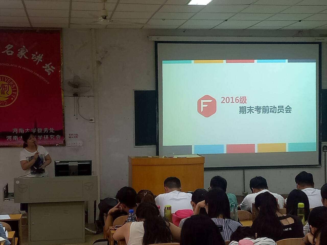 6月27日中午,必赢76net线路唯一官方网站本科2016级全体学生在明伦校区综合楼209教室开展期末考前动员会。2016级辅导员鞠萍出席。会议由2016级副年级长何凌峰主持。